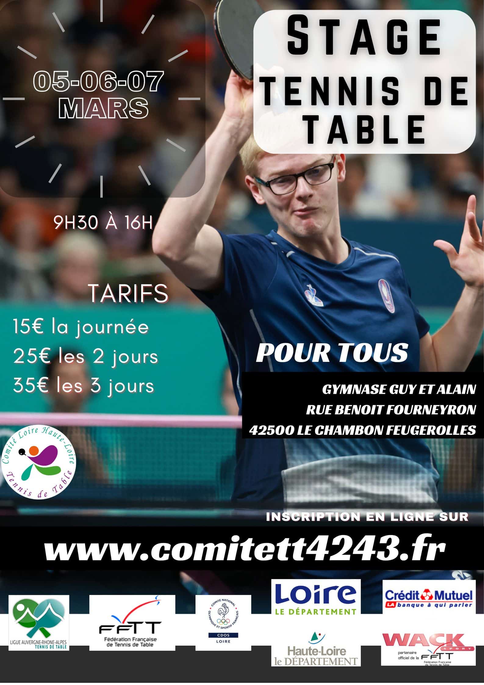 Lieu : Gymnase Guy et Alain, rue Benoit Fourneyron, 42500 Le Chambon-Feugerolles.